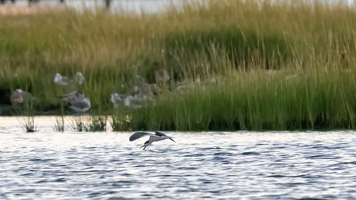 National Geographic, September 6, 2024: “scientists are merely trying to postpone [the Saltmarsh Sparrow’s] extinction…the species is doomed to vanish…as early as 2035 or 2050.” I want to revisit Saltmarsh Sparrows, hopefully after Saltmarsh Sparrow-specific birding that yields photographs. Saw one yesterday, no picture—the species was listed on eBird in one spot in the last seven days, hence birding there. I’ve visited some of that article’s photo locales, need to return—sparrows in mind.